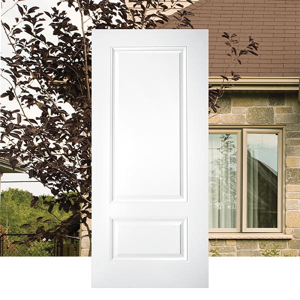 Smooth White 2 Panel 3/4 Lite The Two Panel 3/4 Lite door has a 42″ top panel and a is very popular for front entranceways. Add a 2248-style glass insert, available in stained or textured patterns. Description Description Related products 2 panel Planked Camber Top 2 panel blank top Victoria Shaker